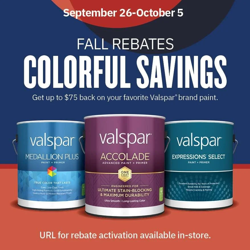 Fall Rebates are here! Get up to $75 back when you buy Valspar paint
